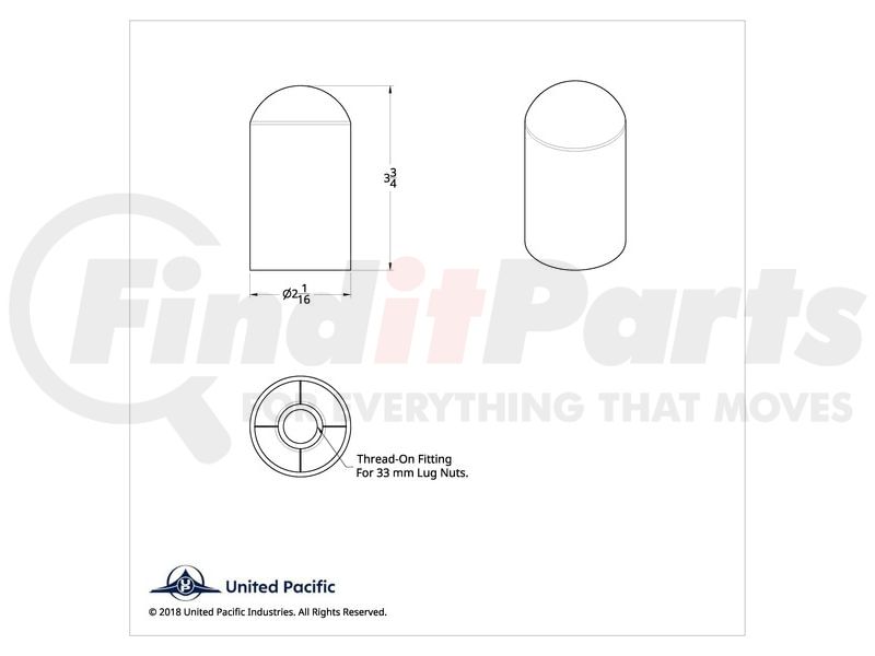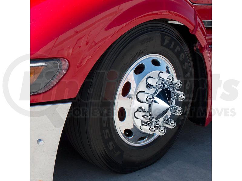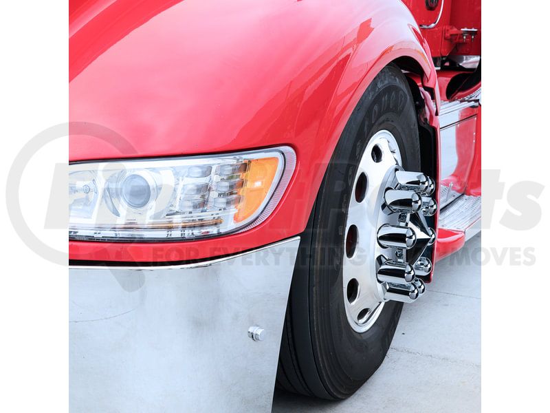 Add some flair and protection to your big rig by adding the United Pacific wheel lug nut cover. This add-on protects the lug nuts from damaging elements while making the wheels eye catching.