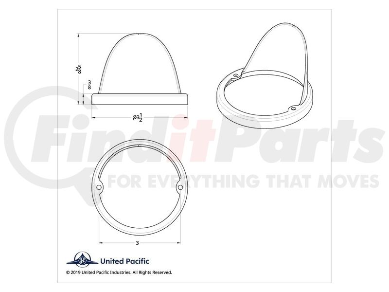 United Pacific 39211B - Light Base - Chrome, LED, Flush Mount, with Visor, for UP Watermelon Style Clearance/Marker Lights