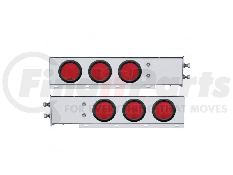 United Pacific 31011 - Light Bar (Pair) - Rear, Spring Loaded, with 2.5" Bolt Pattern, Incandescent, Stop/Turn/Tail Light, Red Lens, Chrome Steel Housing, with Rubber Grommets