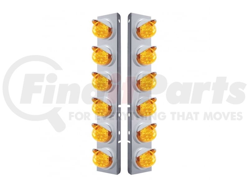 United Pacific 37386 - Air Cleaner Light Bar - Front, Stainless Steel, with Bracket, Reflector Cab Light, Amber LED and Lens, with Chrome Bezel and Visors, 17 LED Per Light, for Peterbilt Trucks