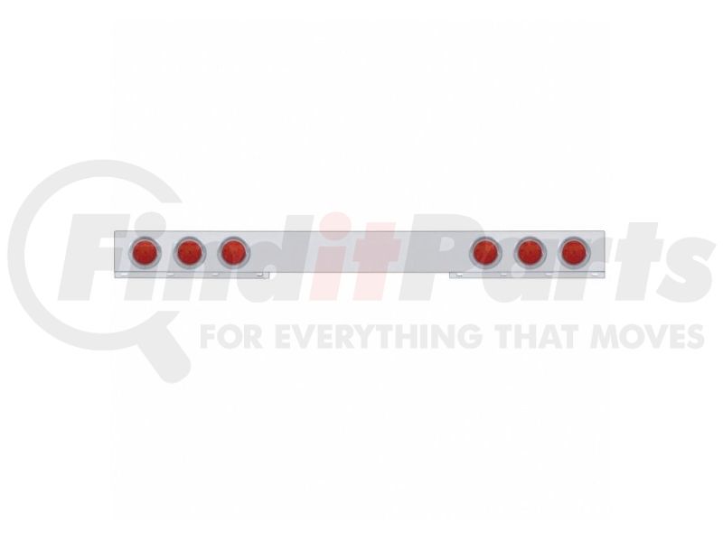 United Pacific 61738 - Light Bar - Rear, One-Piece, Stainless Steel, Reflector/Stop/Turn/Tail Light, Red LED and Lens, with Chrome Bezels and Visors, 7 LED Per Light