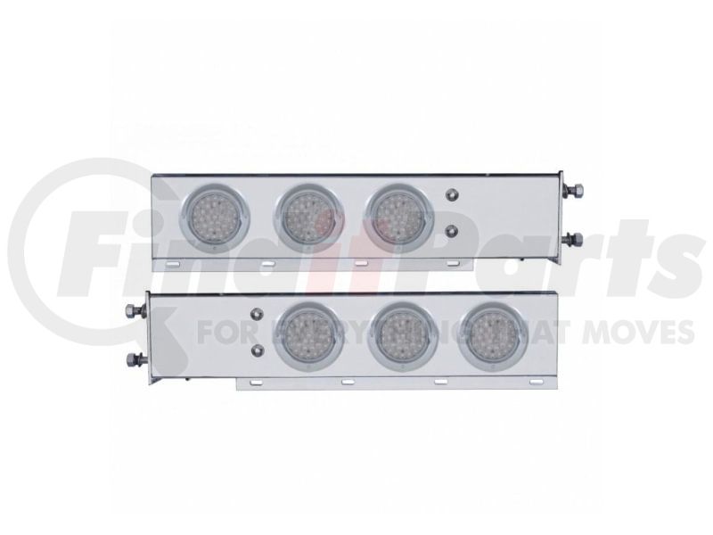 United Pacific 61803 - Light Bar - Stainless Steel, Spring Loaded, Rear, Stop/Turn/Tail Light, Red LED/Clear Lens, with 2.5" Bolt Pattern, with Chrome Bezels and Visors, 36 LED per Light