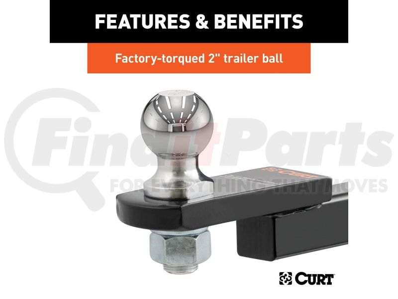 - Factory-torqued trailer ball accepts 2" couplers