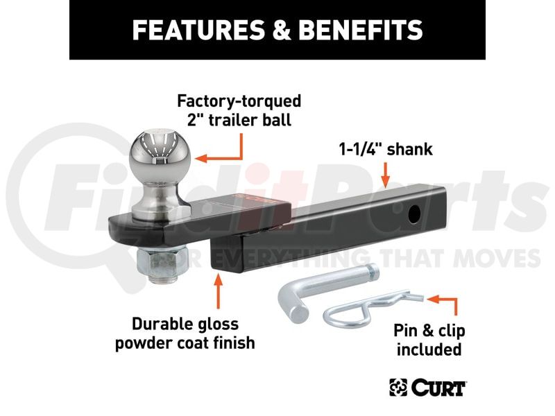 CURT Manufacturing 45147 - Towing Starter Kit with 2in. Ball (1-1/4in. Shank; 3;500 lbs; 3/4in. Rise)