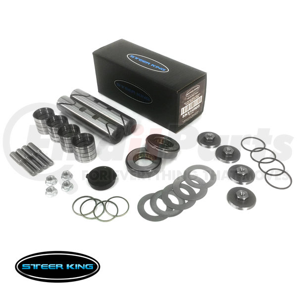 Steer King no-ream spiral steel king pin repair kits are engineered from the ground up for easy install and maximum part life. Premium materials and tight quality controlled manufacturing make these kits the best in the industry. Product Features: - Spiral bushing twists in for fast easy installation - Sprial bushing improves grease circulation and part life - All critical dimensions are 100% inspected for true-fit - All parts are made from top grade materials - Grease grooved king pins improve grease circulation and part life - Bearings come pre-packed with premium grease to save time - Bi-directional grease lip seal installs up or down to save time - Shop-ready box and parts tray keeps parts and workspace clean - Industry leading 3-year warranty