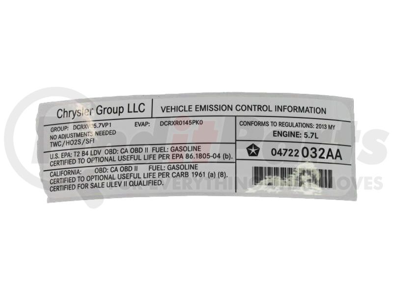 MOPAR 04722032AA LABEL